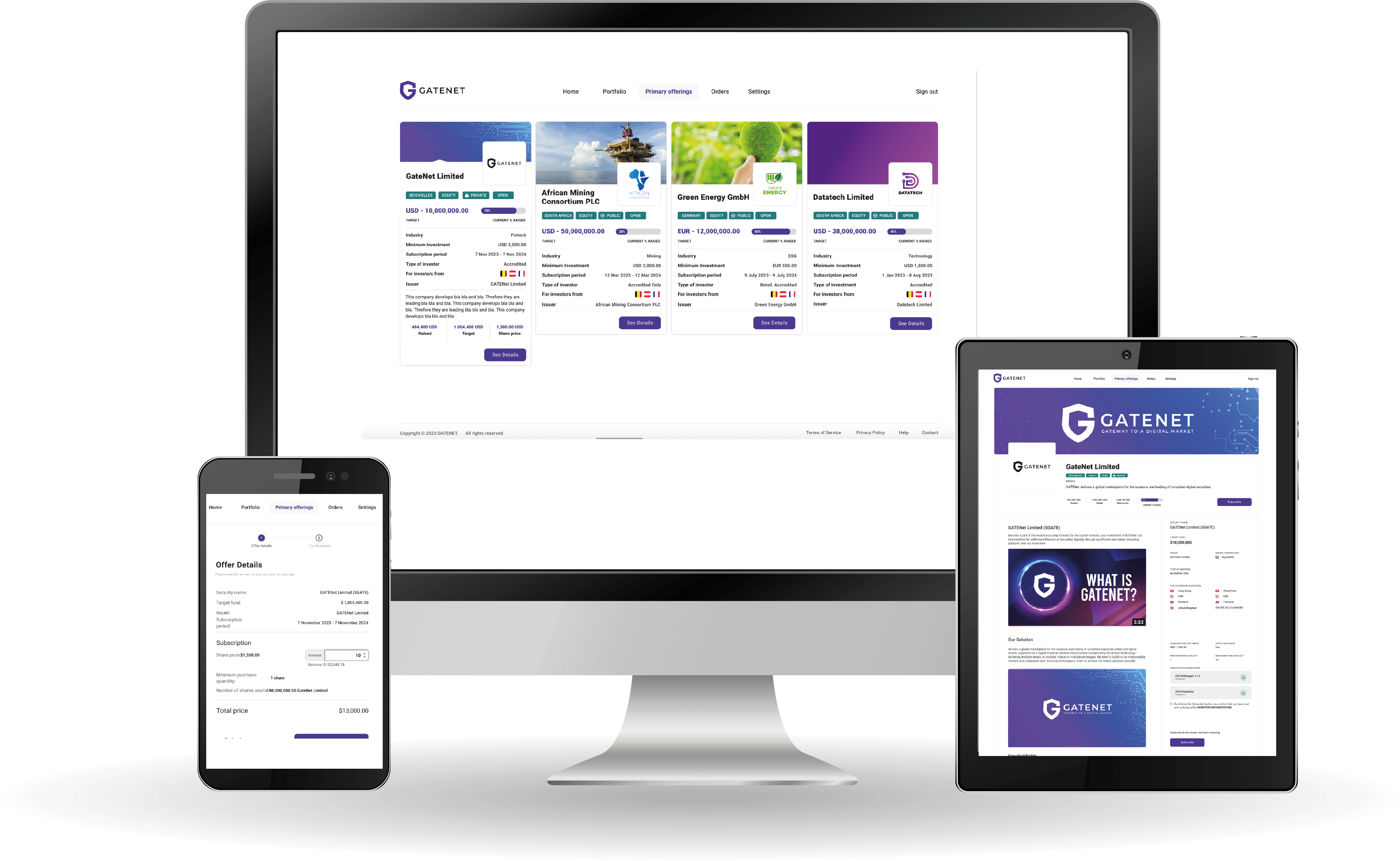 GATENet’s primary offering covers the entire equity issuance lifecycle from asset set-up within the Central Securities Depository (CSD) through to configuring the offering within the front end GATENet Primary Issuance Platform (PIP) with relevant prospectus/offering document and documentation for prospective buyers to view and subscribe to an offering.